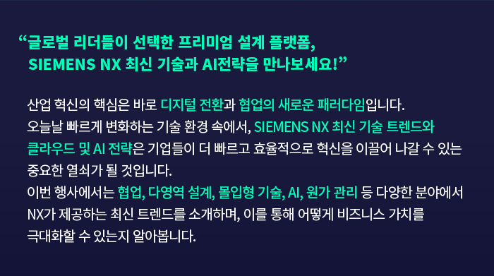 SIEMENS NX 최신 기술과 AI전략을 만나보세요!"